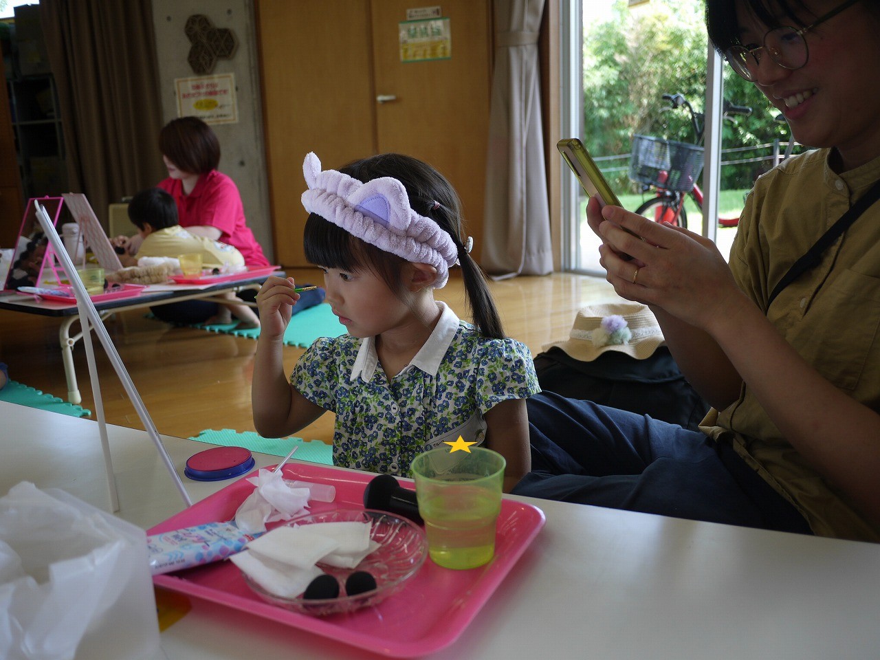 自分でママの真似っ子をしてお化粧のように楽しんでいる子や、腕までペイントしている子、本当に様々でみなさん楽しんでいらっしゃいました〜!