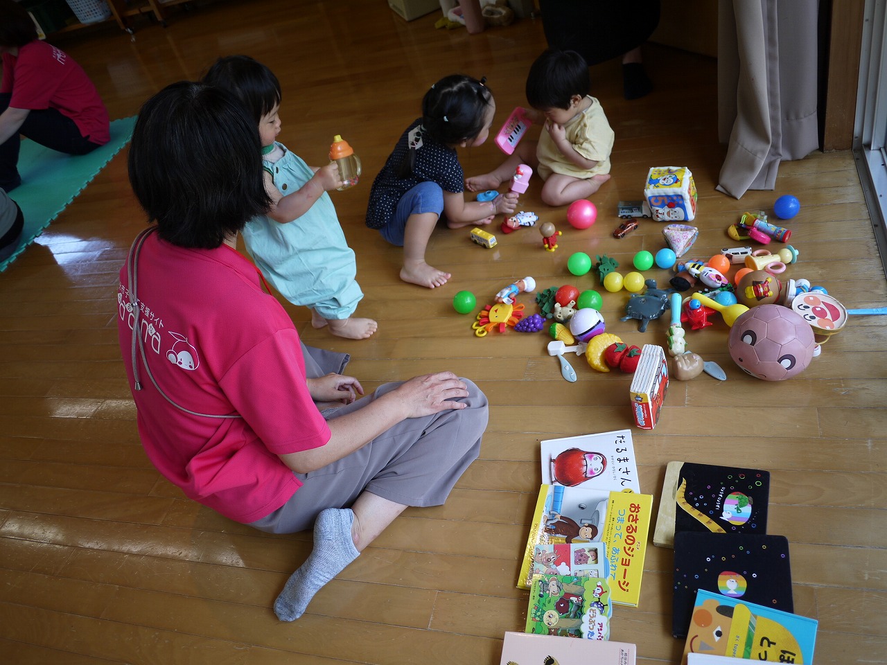 こどもたちはパートナーさんとおもちゃで遊んだり、たまにママの近くに来てお話に参加したりと自由に楽しく過ごしていました。