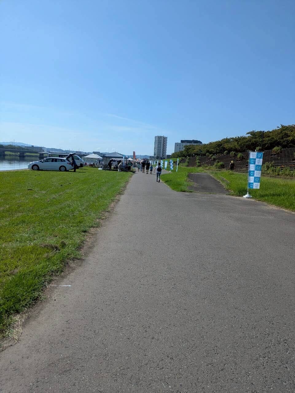 まだまだ暑い日でしたが、河川敷には心地よい風が吹いていて、気持ちよく楽しめました。朝から賑わっていて、子どもたちもワクワクしていました。
