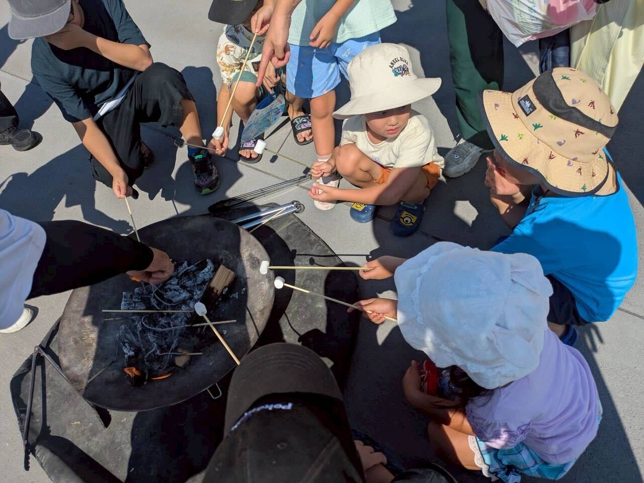 その後はマシュマロ焼きにも挑戦し、とろっと柔らかくなったマシュマロを「美味しい!」と楽しんでいました。