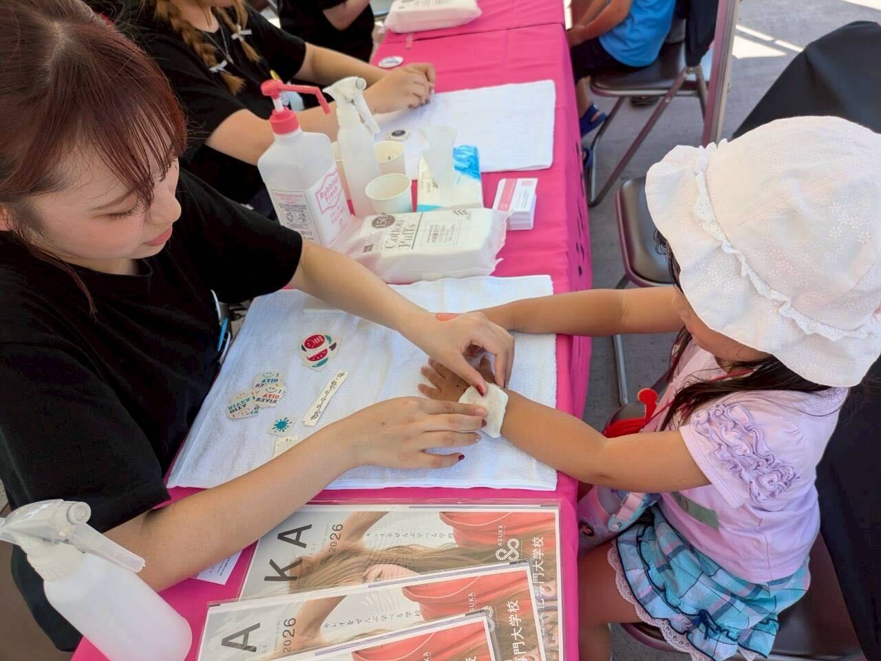 明日香美容文化専門学校の学生さんのブースでは、かわいいボディシールを貼ってもらい、子どもたちもルンルン気分でおしゃれを楽しみました♪