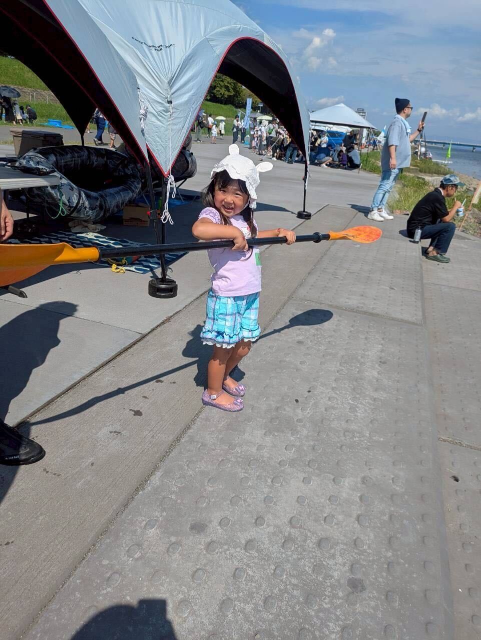 敬老の日の9月15日、舞鶴橋付近の大分川河川敷で開催された「おおいたかわまちリバーフェスタ 第2回 大分川を遊びつくせ!」に、小学1年生の息子と年少の娘、夫と一緒に参加してきました。
