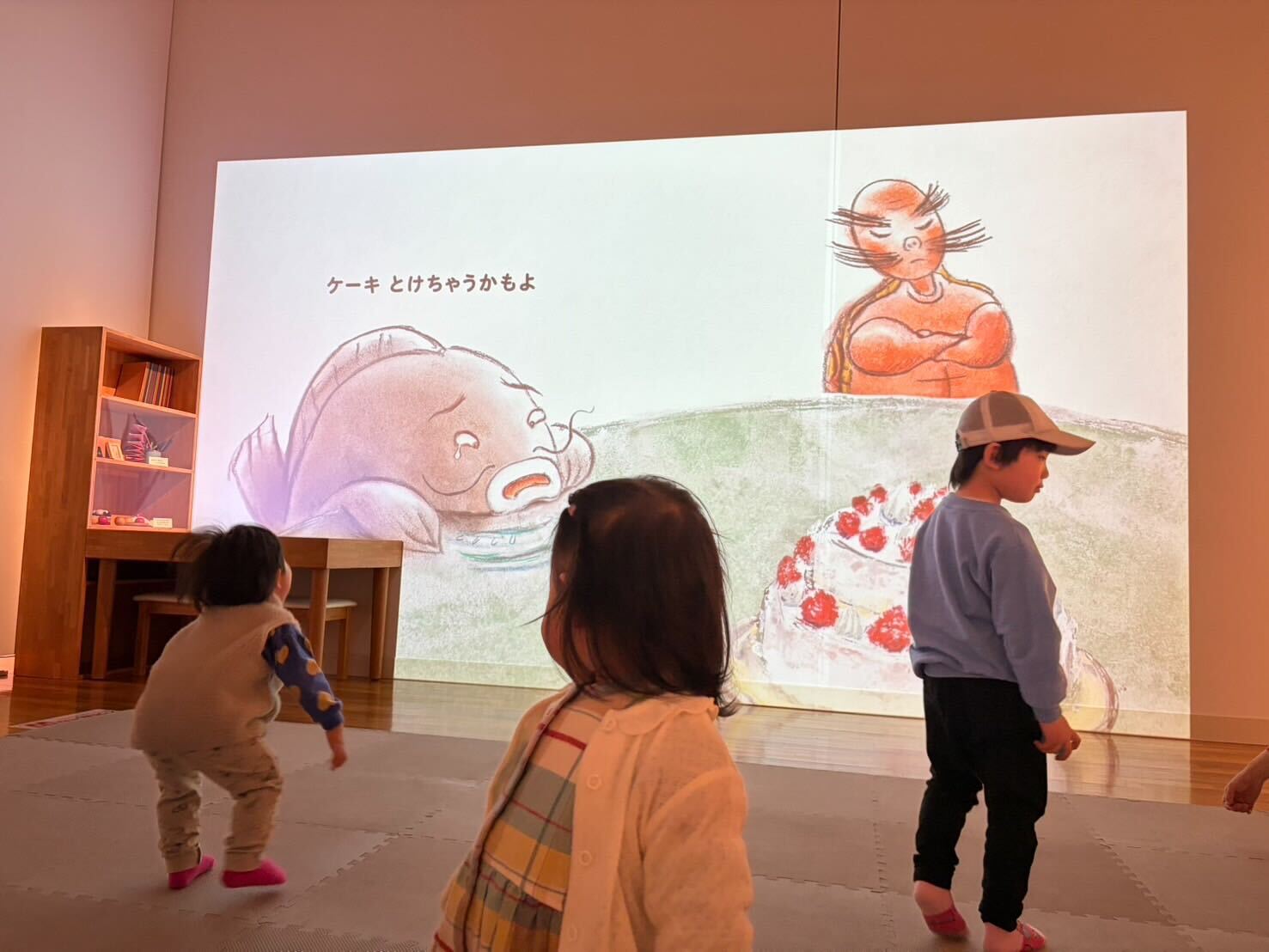 娘が大好きだったのはアニメーション展示。かがくいひろしさんの様々な絵本の内容に合わせて楽しい楽器の音が組み合わさっておりここの場に10分以上?いました。