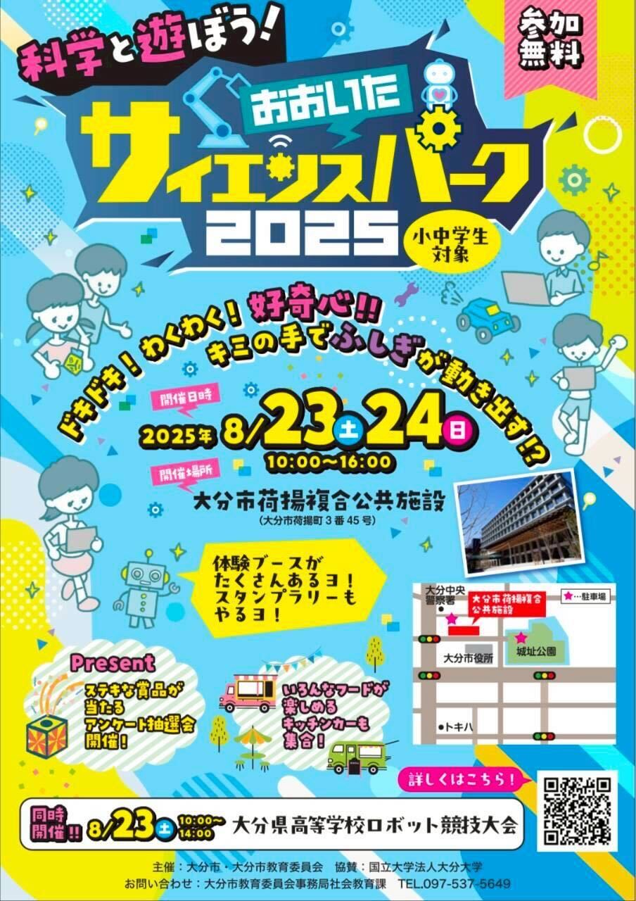 小1の息子と年少の娘、夫と一緒に、8月23日(土曜日)・24日(日曜日)に大分市荷揚複合公共施設で開催された「おおいたサイエンス パーク2025」に行ってきました。
