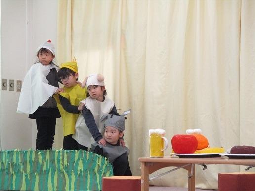 らいおんぐみは「ブレーメンの音楽隊」の劇ごっこをしました。