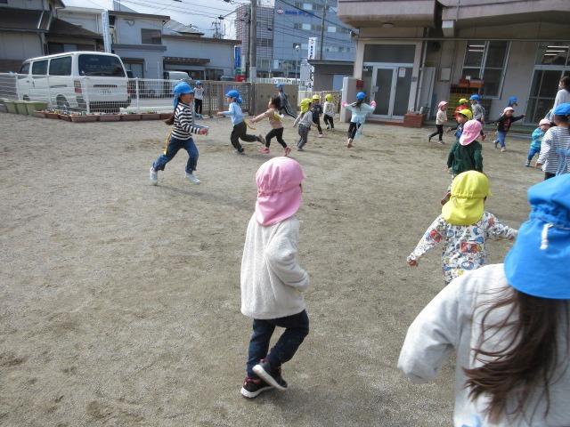 お兄ちゃん、お姉ちゃんのしっぽを取ろうと必死で追いかけるこどもたちでした。