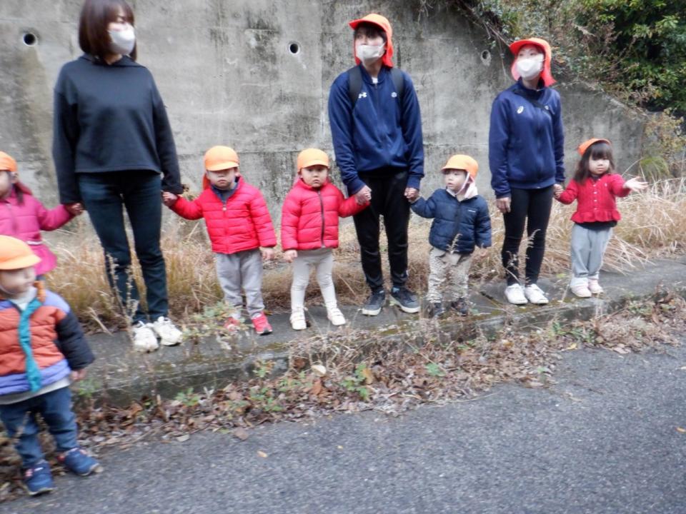 2歳児のこどもたちも、坂道までやってきました。大切な経験です。