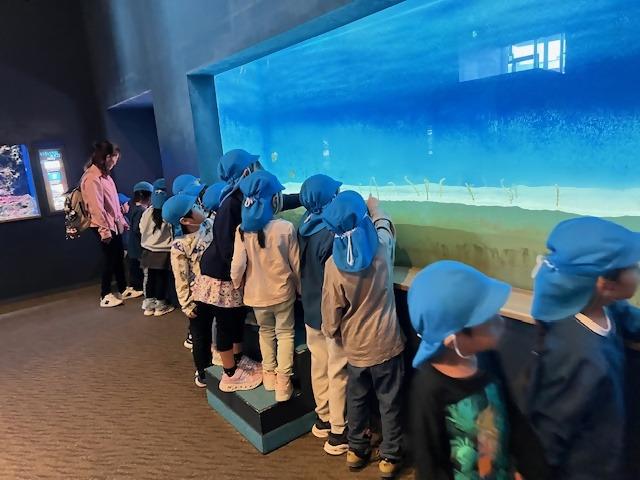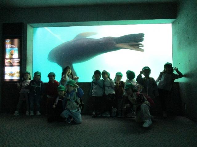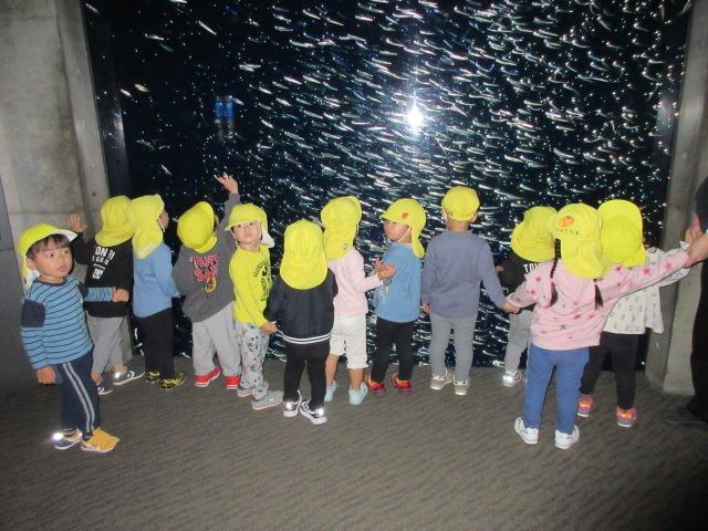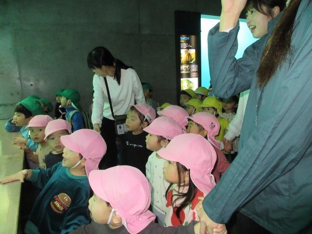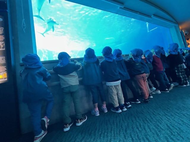 うさぎぐみとぱんだぐみ(2歳児)は一緒に散策。セイウチがみんなの前に泳いできてくれて「おー」と歓声が上がったり、イワシの大群を見て「キラキラや~」と大興奮のこどもたちでした。