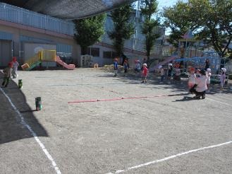 それぞれの年齢に合った運動遊びに取り組んできたこどもたち。体を使って遊ぶ楽しさを十分に味わって活動することができました。らいおん組、きりん組は友達と協力する力、最後まであきらめずに頑張る力がぐっと育った、運動会でした。