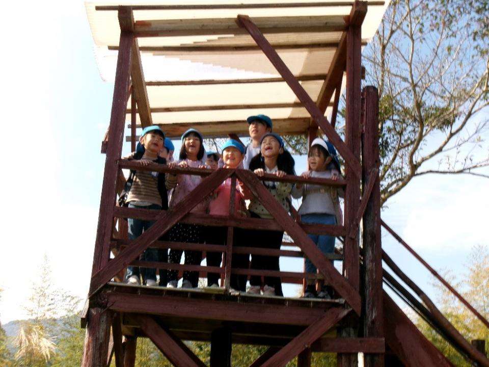 展望台から、みんなで息を合わせて「やまびこさーん」と、呼びかけると遠くで『やまびこさーん』と響く声が!!「あ、聞こえた!」と、大喜びでした。