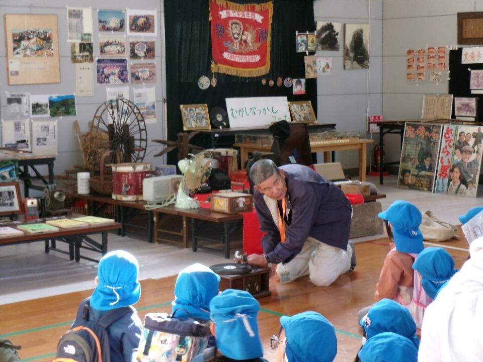 案内してくれたのは、河原内にお住いの坂本さん。くすのきホールでは、今ではなかなかお目にかかれないレコードの音を聞かせてくれました。