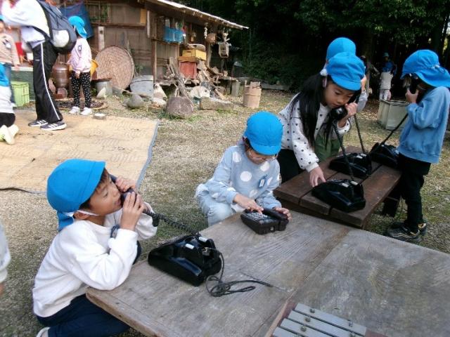 聴診器を当てて、木の音に耳を傾けたり、石臼や黒電話、草刈り機などの昔の道具に実際に触れさせてもらったりしました。初めて触る道具に興味津々!昔の生活に触れる貴重な体験となりました。