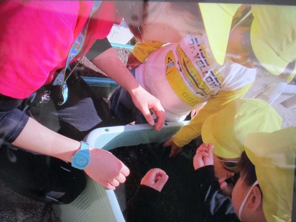 こどもたちです。触ったり、匂ったり・・。にんじんがこんなふうに土の中でできていたことも