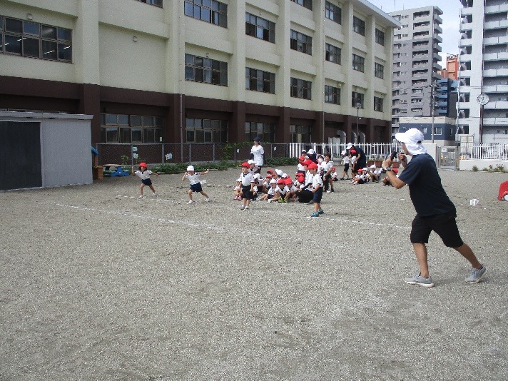 かけっこでは、隣の友だちの速さが気になるこどもたち。でも、「どうやったらもっと速く走れるかな」と考え、まっすぐ前を見て走るよう、頑張っているところです!