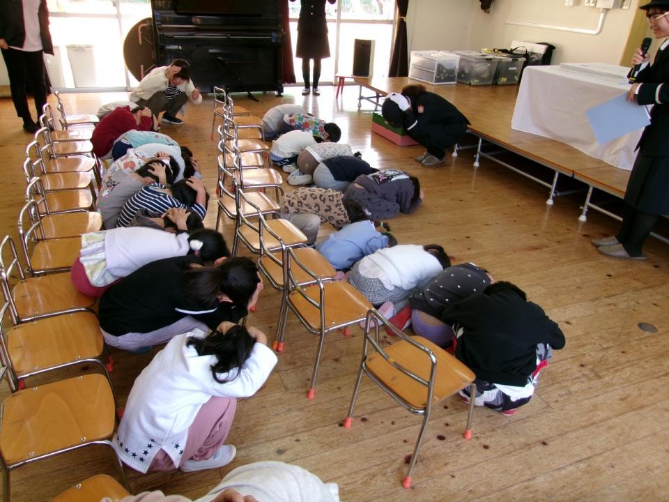 さすが、毎回避難訓練でしているだけあり、地震=ダンゴムシポーズ…が身についています