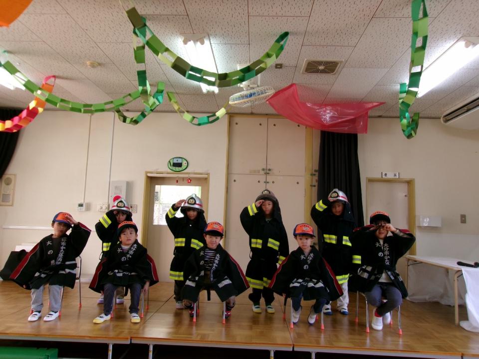 最後に消防団と消防士の防火衣をみんなで着ました。