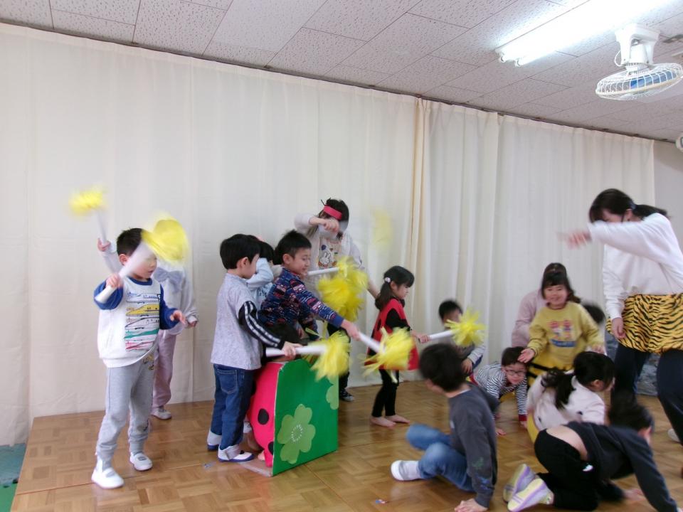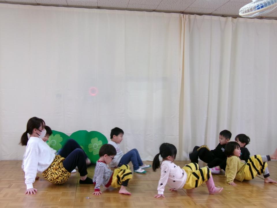 うさぎ組(2,3歳児)は「テントウムシとクモ」の創作劇でした。