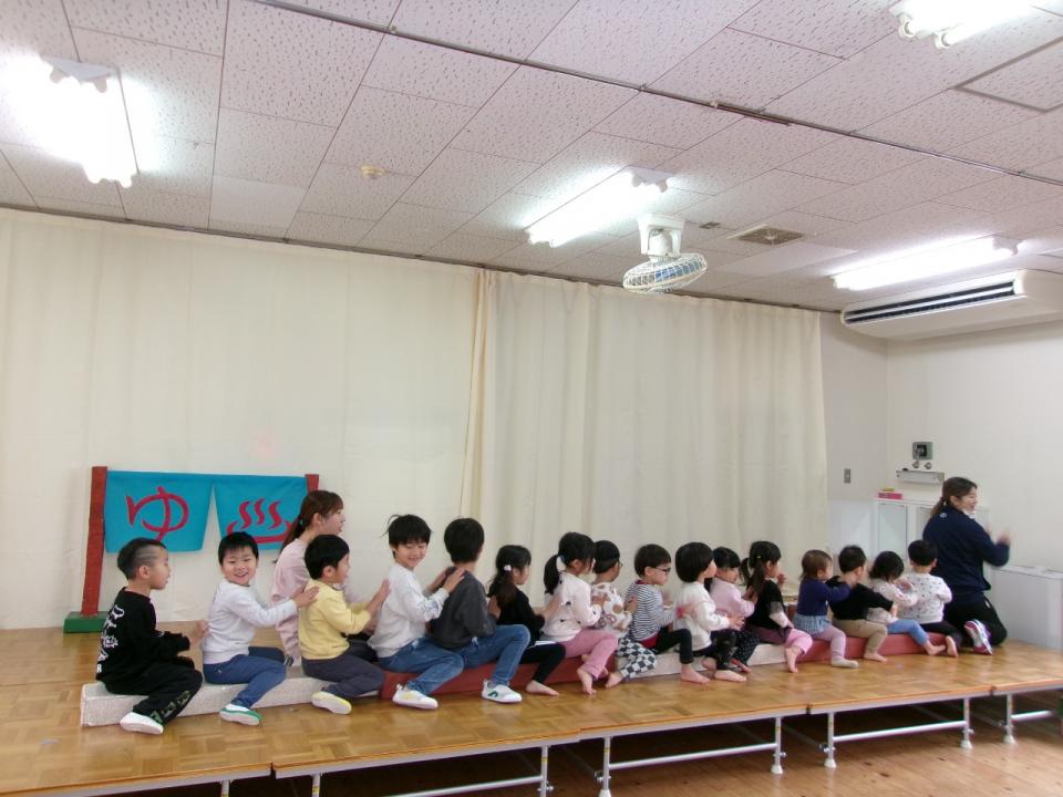 りす組(0.1歳児)は「もりのおふろ」のお話ごっこをしました。