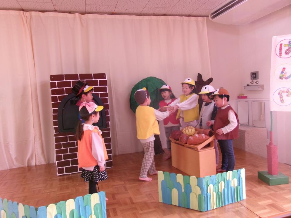 いおん組(4,5歳児)は「からすのぱんやさん」の劇をしました。