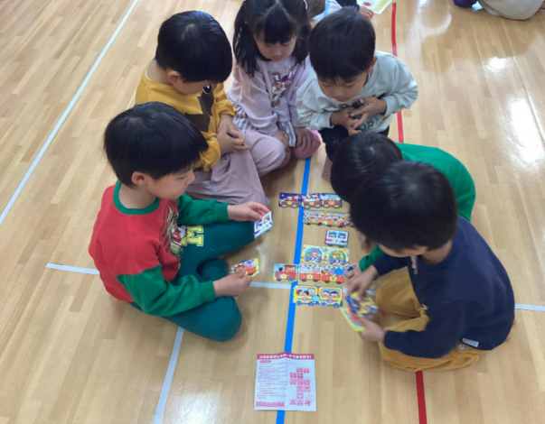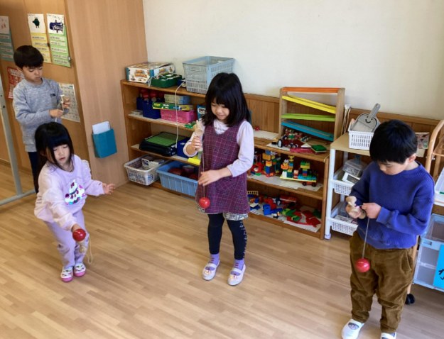 部屋では、お友だちと得意なことを見せ合ったり、やり方を教え合ったりして、友だち同士の関わりを楽しむ姿がたくさん見られています。
