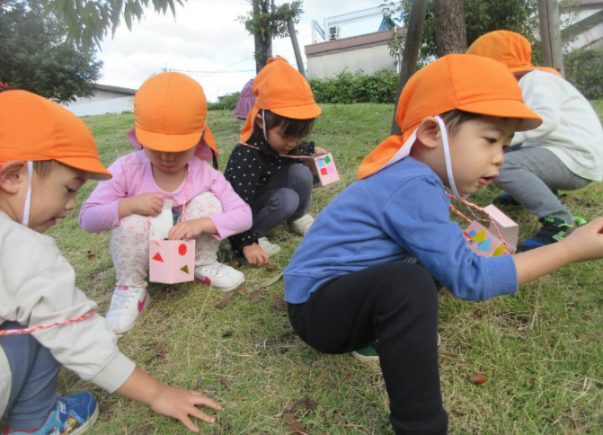 拾ってきたどんぐりや松ぼっくりはおままごとに使ったり、コリントをしたりして楽しんでいます。